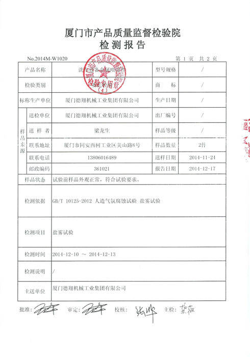 洗車機(jī)金屬噴涂件檢測(cè)報(bào)告